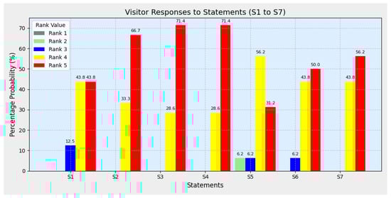 Figure 8 presents the individual responses of 16 visitors to the seven survey statements.
