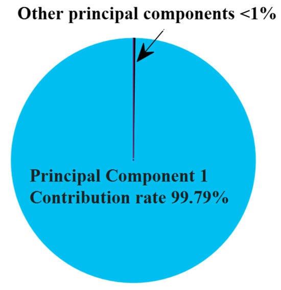 In this paper, as shown in Figure 3, the fan plot displays that the contribution rate of the first principal component is very high, reaching 99.79%, while the contribution rate of all other principal components combined is less than 1%. This means that of all principal components, the first principal component accounts for the data variability. Therefore, in practical applications, only the first principal component can be used as the basis for subsequent analysis or model construction, thereby simplifying the model and reducing the computational complexity.