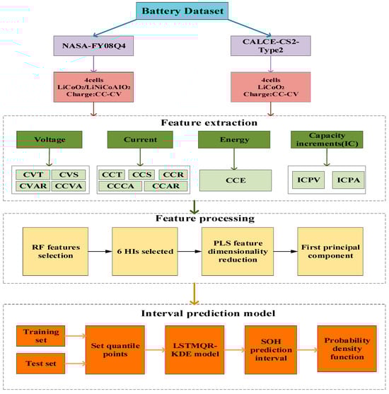 The flowchart of the SOH interval forecast based on LSTMQR-KDE is summarized in Figure 5. The entire forecast process is detailed below.