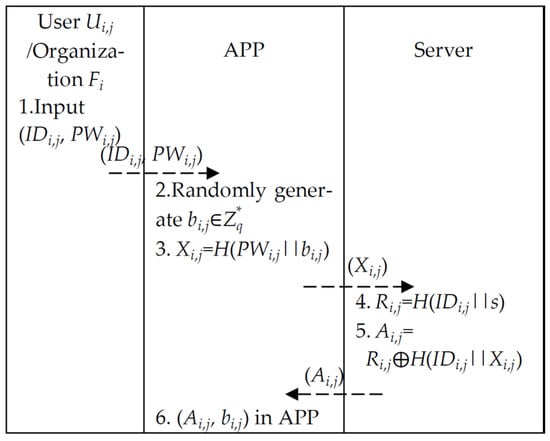 User and organization input (, ) for registration through a secure channel. The steps in detail are described as below and illustrated in Figure 4.