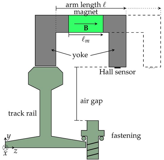 7] with a simple magnetic circuit as shown in previous Figures. The novelty of this magnetic detector is not specifically its geometry, but its tailoring to the given application needs. As constrained by the railway clearance profile, especially the magnetic circuit’s simple structure should enable fastening detection even at significant distances. More complex geometries could potentially increase detection probability, but far more complex simulations would have to be carried out. As shown in