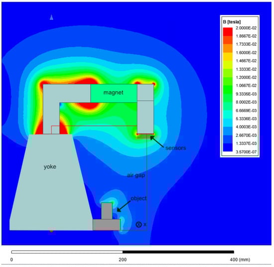 Figure 4). At each step the field was then simulated. Also, the model was equipped with three magnetic sensors at crucial positions on the yoke’s air gap facing side as sketched in
