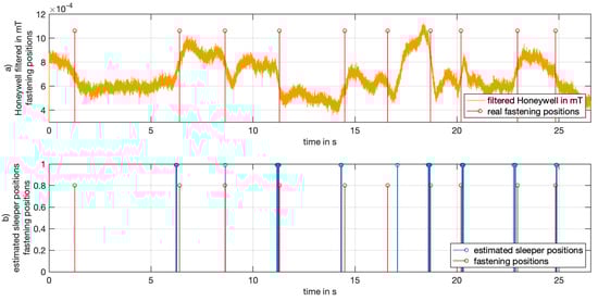 Figure 3). The strongest field variation due to the fastening was measured at the inner edge of the yoke. As a result, only those three positions were then used for further simulations. It should be noted that using two sensors, as in the prototype, is the minimum requirement for this detection application. Having three or more sensors would allow for the measurement of additional railway properties such as additional steel lying around or the position of the detector with respect to the fastening (before or after). Moreover, if even more sensors were used, possibly spread over a distance equivalent to the standard sleeper distance, it would be possible to measure the actual sleeper distance and potentially estimate the position of the next sleeper. Two sensors were chosen due to constraints on detector size and cost.
