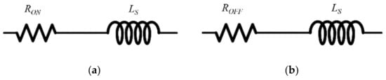 Equivalent circuit of BAP70-03. (a) PIN on; (b) PIN off.