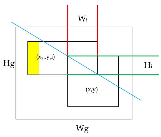 In Equation (2), is the distance between the centers of Box A and Box B, is the length of the diagonal of the smallest enclosing rectangle of Box A and Box B, is the similarity of the aspect ratio of Box A and Box B, and is the influence factor.