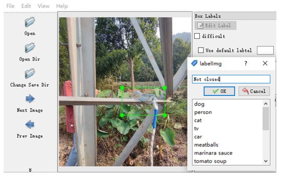 LabelImg [36] is an open-source software program for image annotation. The Hook Dataset is used for target detection tasks. LabelImg image annotation tool is used to annotate the real frame of the sample image. LabelImg tool is written in Python language and is open source. The label information can be saved as an XML file conforming to PASCAL VOC format or as a TXT file, as required by YOLO. Figure 11 shows the marking process.