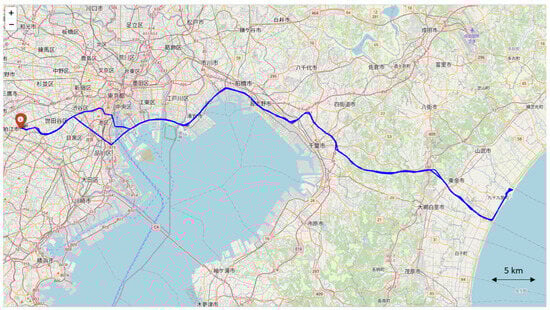 In recent years, the development of GPS and other location information systems has simplified and increased the accuracy of determining the position of various objects, including people and vehicles. The data obtained in this way are used to conduct new types of research in various fields, including traffic engineering, urban planning, disaster prevention, and behavioral pattern analysis. For example, a proposed method uses cell-phone location data to extract individual behavior patterns, which can then be exploited to identify movements within a city [1,2,3,4]. The spatial distribution of base users is visualized by analyzing GPS data, and the characteristics of human flows and the location of bases are discussed [5]. There is also research on the obstacles faced when people must flee to evacuation sites during natural disasters, as well as efficient evacuation guidance using GPS-derived movement trajectory data [6]. Furthermore, the actual damage and recovery process can be read from post-earthquake behavior patterns based on GPS information [7,8].