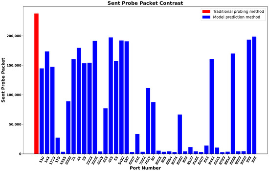 Traditional port scanning methods involve sending probe packets to all addresses and ports to be scanned during network probing. Specifically, for each IP address in the test set, traditional methods send at least one probe packet to each port, which means that at least 230,000 packets need to be sent. While this method is comprehensive, it undoubtedly generates a large amount of unnecessary network traffic and exerts significant pressure on the target network.