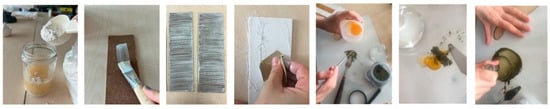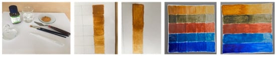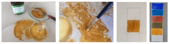 These binders consisted of materials used in fresco, secco, tempera, tempera grassa, oil paintings and watercolor techniques [33,34,35]. The reason for using different binders in paint is that the pigment volume concentration ratio changes according to the binder.