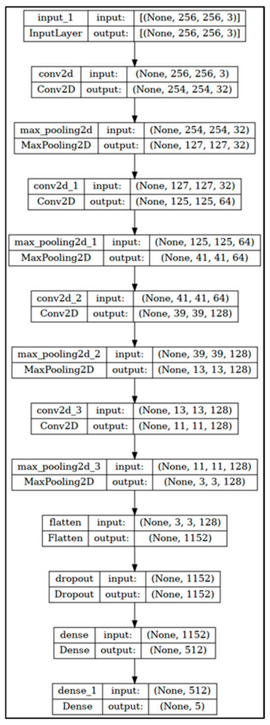 Based on the findings of these researchers, deep learning and convolutional neural networks were used in this study because they were successful in image classification [31,32].