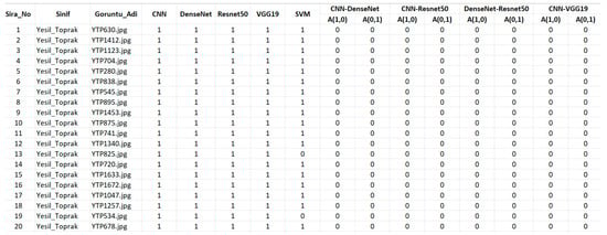 When all models were evaluated, it was seen that the most successful model was ResNet50. After ResNet50, this order was followed by DenseNet, VGG19, the SVM and the CNN. The results obtained in the McNemar test had similar success with the code result.