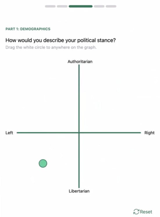 - Hugging Face Post on the Political Compass Test. Available online: https://huggingface.co/datasets/lukaspetersson/ThePoliticalCompassTest (accessed on 30 July 2023).