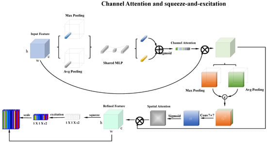 In the field of deep learning, especially in computer vision tasks, feature extraction and channel recalibration are key steps to improve model performance. This study proposes to apply the Squeeze-and-Excitation (SE) module before and after integrating it with the Transformer architecture to incorporate channel attention, creating the CASE module, as illustrated in Figure 3. The CASE module introduces an extra processing step to improve channel selection and tuning capabilities during feature extraction, allowing for more precise control over the feature representation. In the Transformer architecture that incorporates channel attention, the SE module can be inserted after the self-attention layer to enhance the model’s focus on crucial feature channels, conveying more valuable information in subsequent layers. The SE module can be applied after the multihead attention computation to further adjust the importance of the channels based on the attention-weighted features, enabling the model to prioritize features that are more relevant to the current task. We also propose the idea that the SE module can be applied after each head of multihead attention separately, adjusting the importance of the channels according to the different subspace information captured by each head.
