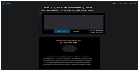 - Price, G.; Sakellarios, M. The Effectiveness of Free Software for Detecting AI-Generated Writing. Int. J. Teach. Learn. Educ. 2023, 2. Available online: https://api.semanticscholar.org/CorpusID:265492104 (accessed on 30 July 2024). [CrossRef]