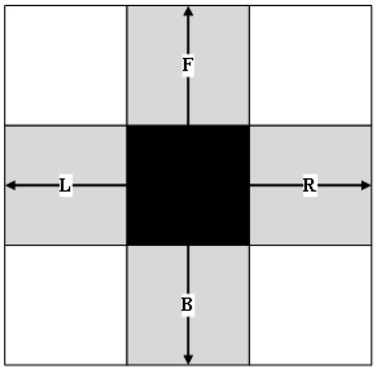 In outdoor missions such as disaster relief or military reconnaissance, UAVs are required to operate within designated target areas. Regarding environmental modeling, the grid-based approach has gained widespread academic favor due to its convenience in construction, representation, and storage [30]. This paper likewise adopts the grid-based method to construct the environmental model, establishing coverage rules and constraints based on the grid division of the mission space. To optimize UAV operations, the motion model is simplified and flight directions are restricted to ensure that the UAV flies along one of the four basic directions in the Von Neumann neighborhood at any given time (as illustrated in Figure 1), thereby achieving efficient coverage.