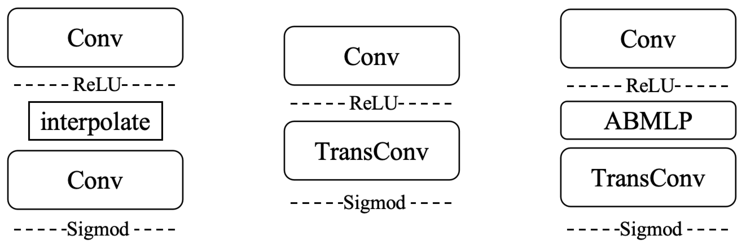 Comparison of decoders: on the left is the reflectance decoder before improvement (DAI-Net [14]), in the middle is the reflectance decoder after improvement, and on the right is the improved reflectance decoder with ABMLP.