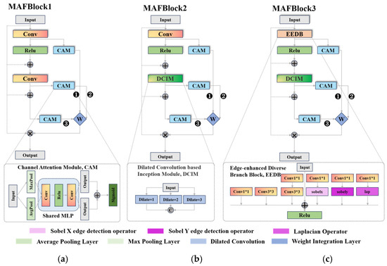where 1/2/3 in represents three versions of MAFBlock (e.g., Figure 2), and ×16 represents a cascade of 16 MAFBlocks stacked atop one another. The MAFBlock comprises two core components: the feature extraction component and the multi-scale attention fusion.