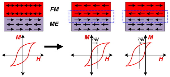 Exchange bias between FM and ME layers.