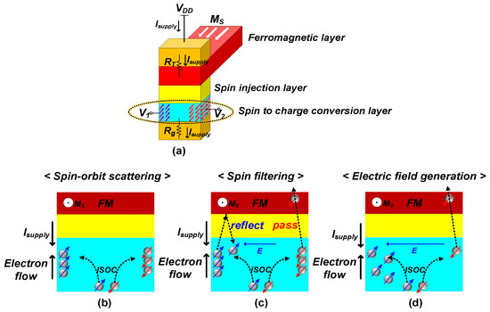Simultaneously, spin-based filtering occurs at the interface between the spin injection layer and the FM layer, as depicted in Figure 5c. Conduction electrons possessing spins aligned with the FM layer traverse through, while those with spins not aligned are reflected back to the spin injection layer and the SCC layer. Note that, in this context, the spin-based filtering mechanism serves as the explanatory framework for the spin polarization observed within the Isupply.