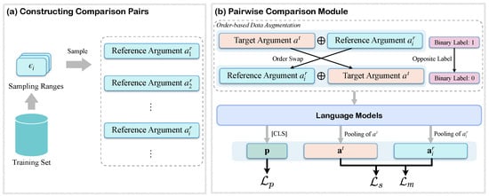 Consequently, the binary classification label of is the opposite of S; that is, 0 becomes 1, and 1 becomes 0. This order-based data augmentation strategy reduces the pairwise comparison module’s sensitivity to the order of arguments, thereby enhancing its robustness.