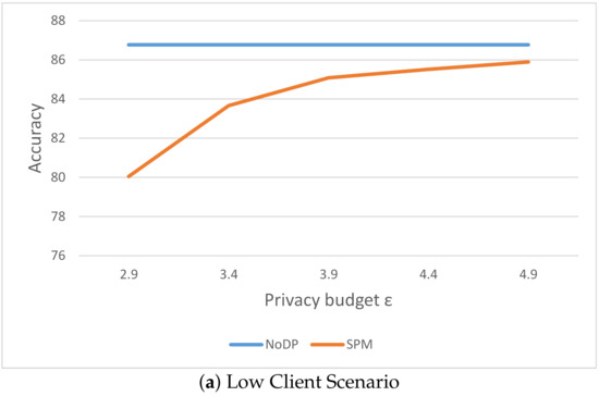 Lemma A1 proves the usability of this mechanism, showing that the model weight parameters, after being perturbed by the mechanism, still maintain high accuracy after aggregation across clients. Compared to other algorithms, it has a smaller variance, making the SPM mechanism more favorable than the Laplace mechanism and the solutions presented in the literature [27,29]. See Figure 2.