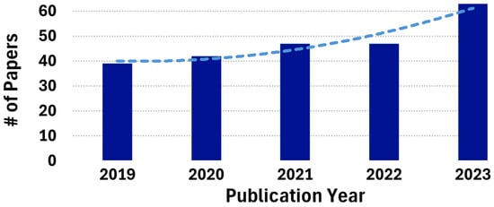 The use of FPGAs by researchers for physiological monitoring in wearable devices is increasing to meet the demand for higher computational capabilities, as shown in Figure 2. We evaluated various survey and review studies related to the objective of this work.