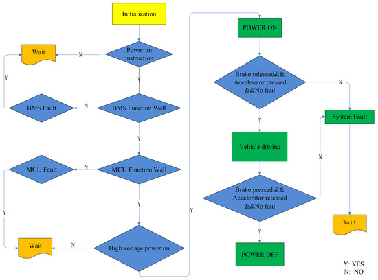 In the 13 sub-items of the real-vehicle functional tests, adherence to the predetermined development flowchart is maintained. The flowchart in the Figure 9 primarily delineates the process mechanism for signal detection and fault status determination during the reception of driver operation instructions following system initialization. This process establishes a foundation for the functional validation of subsequent digital twin testing.