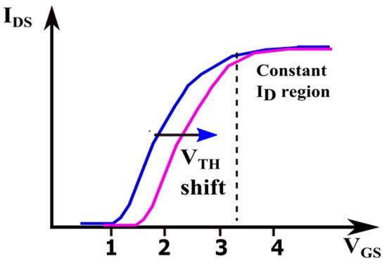 Transfer characteristic showing constant ID region insensitive to VTH shift caused by VG stress.