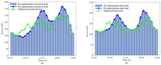 (a) Comparison before and after electrical load optimization; (b) comparison before and after heat load optimization.