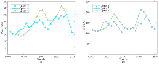 The changes in electrical and thermal loads for the three scenarios are shown in Figure 7.