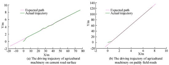 Figure 11. Driving trajectory of agricultural machinery in two testing scenarios.