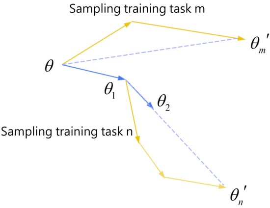 where is the meta-learning rate. This formula moves the initialization parameters toward the task-specific parameters obtained from task . Repeating this process across different tasks gradually refines the model initialization.