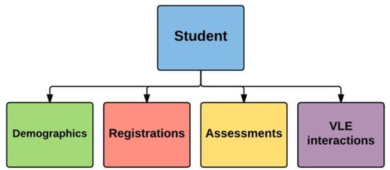 vle. Every table of the dataset has unique information that can be connected to the facts from other tables by means of identifier fields. There are 32,593 registered students and 22 module presentations in the dataset. The dataset structure is depicted in
