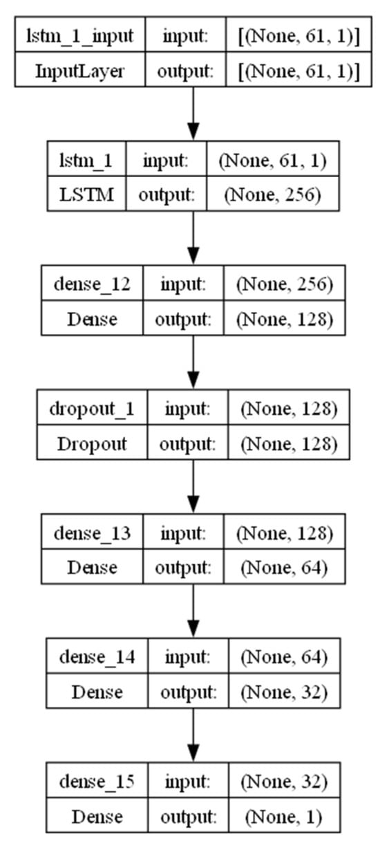 29]. This model is particularly useful for our time series-like data, allowing the network to remember past data points and use them to influence the output, effectively capturing temporal relationships in the data. The model summary of the LSTM is shown in