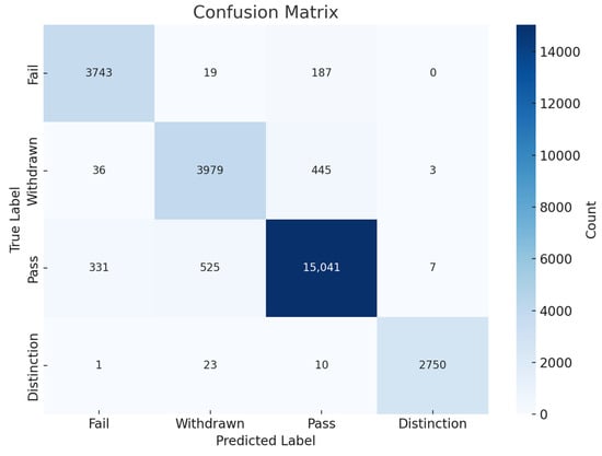 Figure 11. The confusion matrices reveal that almost all the machine learning models were confused between ‘withdraw’ and ‘pass’ classes and ended up making a large number of misclassifications for these classes.