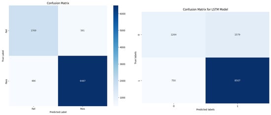 The confusion matrices for the second custom NN model and the LSTM model are shown in