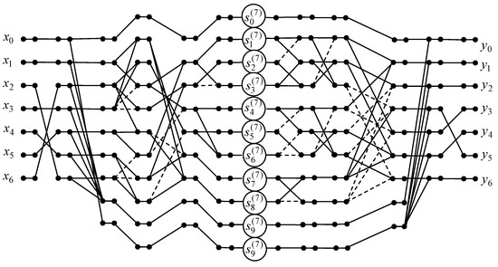 Based on properties of structural matrices [28,29], the computational procedure for the seven-point DCT-V is represented by expression