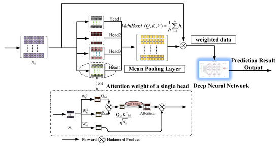 The multi-head attention mechanism empowers the model to autonomously learn from data by selectively focusing on key features. This approach enhances learning efficiency and enables the model to effectively extract relevant information. The weighted data are then fed into a deep learning model for training, where the model iteratively optimizes its parameters using backpropagation to minimize the loss function.