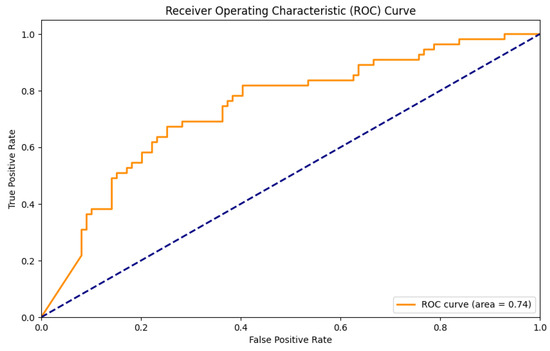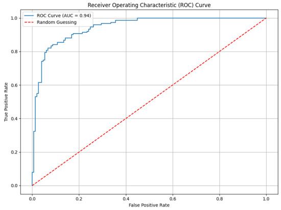 During model evaluation, key performance metrics such as the accuracy, precision, recall, F1 score, mean squared error (MSE), and ROC-AUC were used to assess both the classification and regression aspects of the model’s performance. Accuracy and precision reflect the model’s correctness in identifying diabetic patients, while the F1 score balances precision and recall. The MSE quantifies the average squared deviation between predicted and actual values, providing insight into prediction accuracy. To ensure robustness, cross-validation and a learning curve analysis were conducted, further supporting the model’s generalization capability across different datasets. The metrics accuracy, precision, recall, F1 score, and MSE were calculated using the following formulas: