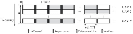 Unmanned Aerial Vehicles (UAVs), also known as drones, are gaining wide popularity and have tremendous potential in many civilian and commercial applications [1,2], including smart cities [1,2], precision agriculture [3], border patrolling [4], and public safety [5]. Meanwhile, providing UAVs with cellular connectivity will widen their usage cases, especially as user equipment (UE) to perform tasks [6,7]. In particular, the development of high-speed wireless communication techniques, such as Sixth Generation Mobile Communication Technology (6G), will enable UAVs to transmit data at higher rates [8] and over longer distances [7] compared with present conventional short-range communication techniques, such as WiFi and Bluetooth. In these actual scenarios, one typical use of UAV-UEs is real-time automatic inspection [6,9,10], where the UAV-UEs are controlled by control centers and dispatched to several specific hotspots and then send video streams recorded by cameras mounted on the UAV-UEs to the base stations (BSs) [11].