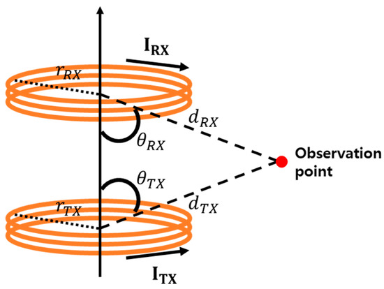Before delving into the details of the proposed method, we first examine the factors influencing the leakage magnetic field generated by the coil. The magnetic field produced by a typical circular coil is represented by Equation (1) [26].