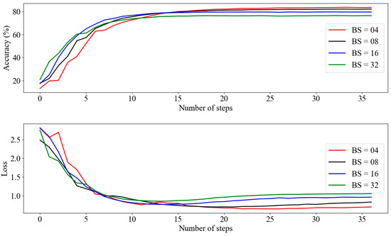 While all batch sizes showed a rapid initial decrease in loss, indicating effective learning, smaller batch sizes (especially BS = 04) exhibit greater variability and higher variance in the loss curves. In contrast, larger batch sizes (BS = 16 and 32) produced smoother and more stable loss curves. Despite the slight increase in variability with smaller batch sizes, all configurations converged to comparable accuracy and loss levels by the end of the training. This demonstrates that, even with the constraints of edge devices, effective learning can be achieved with smaller batch sizes without significant performance loss.