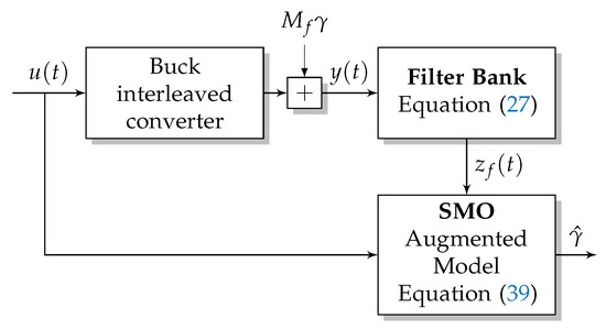 However, the challenge of this technique lies in implementing the observer considering the augmented system. In other words, implementing the filter bank given by Equation (27) entails increasing the complexity and size of the circuit. It is possible to implement the strategy digitally both filter and SMO of the augmented model, as there are discrete design methods for sliding mode observers (SMOs) or numerical approximation methods that yield good results [37].