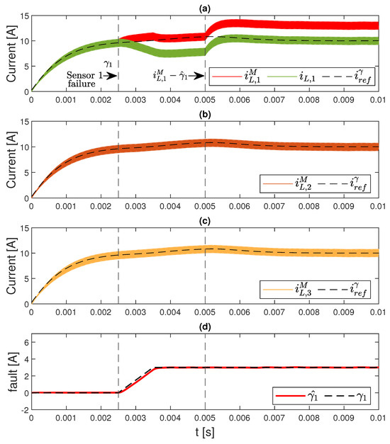 Based on (10), the total reference current can be generally expressed as a function of the actual currents flowing through each inductor and the faults that the sensors may exhibit, represented as disturbances: