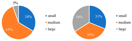 The Urised11 dataset contains 7364 urinary sediment images, all sized 720 × 576, with a total of 58,063 labels. The training and validation sets were divided in a 4:1 ratio. The training dataset contains 5891 images, while the test dataset has 1473 images. Figure 5 shows the number of labels in each category of the dataset, and Figure 6 illustrates the percentage of small, medium, and large objects. It is evident that the percentage of small and medium objects in the Urised11 dataset is significantly higher than that of large objects, with small objects comprising 34%. In contrast, the COCO2017 dataset has a near 1:1:1 ratio for small-, medium-, and large-object labels. Therefore, the Urised11 dataset is more suitable for validating Dq-YOLOF.