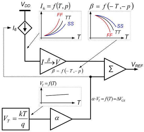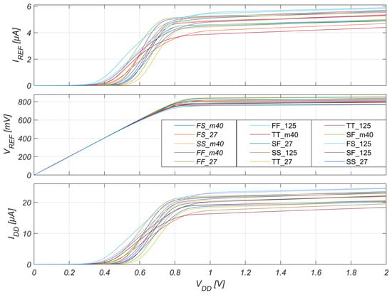 - Lin, H.; Chang, D.-K. A Low-Voltage Process Corner Insensitive Subthreshold CMOS Voltage Reference Circuit. In Proceedings of the 2006 IEEE International Conference on IC Design and Technology, Padua, Italy, 1–4 May 2006; pp. 1–4. [Google Scholar] [CrossRef]