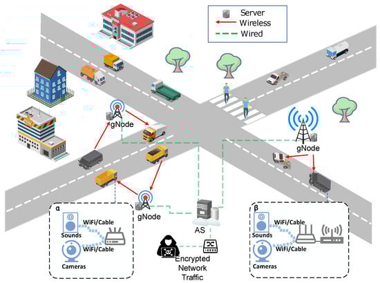 The adversary can trace back all network flows to different devices according to their source addresses. However, the adversary cannot obtain the plaintext payload and destination features of the flows. Our assumptions match the real-world scenario, since IoV devices’ network flows are typically encrypted, and the adversary cannot access the plaintext.