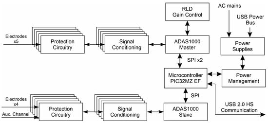 For signal acquisition, we considered three different options: a set of instrumentation amplifiers, and two Analog-Front-End (AFE) solutions, one from Analog Devices, Inc. (Wilmington, MA, USA) [