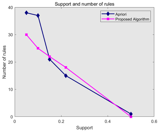 However, certain limitations remain. The necessity to construct a comprehensive graph of the support for all frequent subsets requires the imposition of a support threshold on selected rules. Without this constraint, the rapid expansion of the problem space due to a high number of attributes in frequent sets can lead to substantial space consumption. Future research should focus on refining the determination of experimental parameters and developing strategies for compressing the problem space to further improve algorithmic efficiency in scenarios with numerous attribute columns. The proposed algorithm can also be combined with other algorithms and applied to new fields, for instance, integration with text mining [46] techniques could enhance sentiment analysis, public opinion management, and keyword extraction, among other areas.