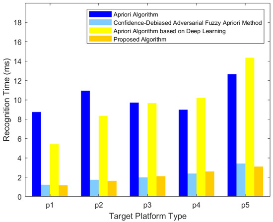 According to the results, the accuracy of the AA based on DL and the proposed algorithm is comparable, with an increase of about 12% compared with the AA and an increase of about 25% compared with the CDAFAM. In terms of time, the CDAFAM is comparable to the proposed algorithm, accounting for approximately 20% of the AA. The AA based on DL, because of the content of the data, sometimes takes more time than the AA and sometimes takes less time than the AA. The proposed algorithm takes a short time and has high recognition accuracy.